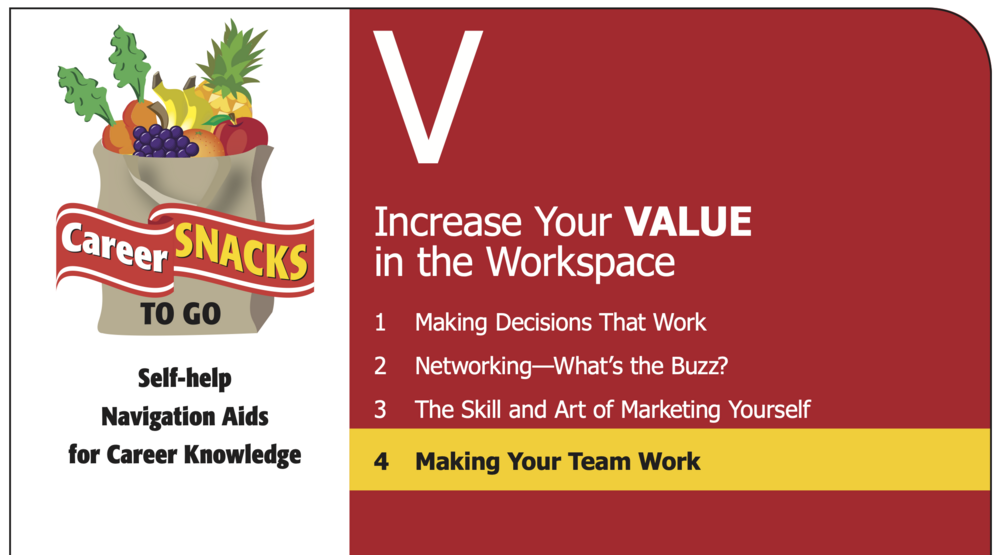 This Career SNACK To Go™ will help you build one of the most critical skills in today’s workplace: being a good and smart team player. You’ll learn how and why teams can work effectively, and what goes wrong when they don’t. With lots of tips and examples, you can quickly diagnose issues and leverage strengths on your team.